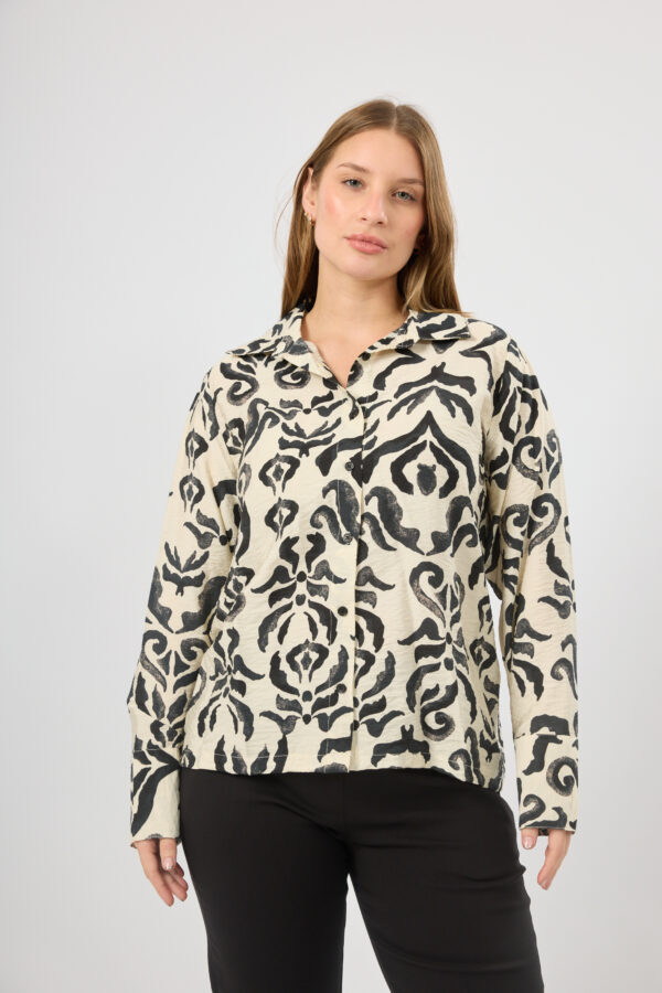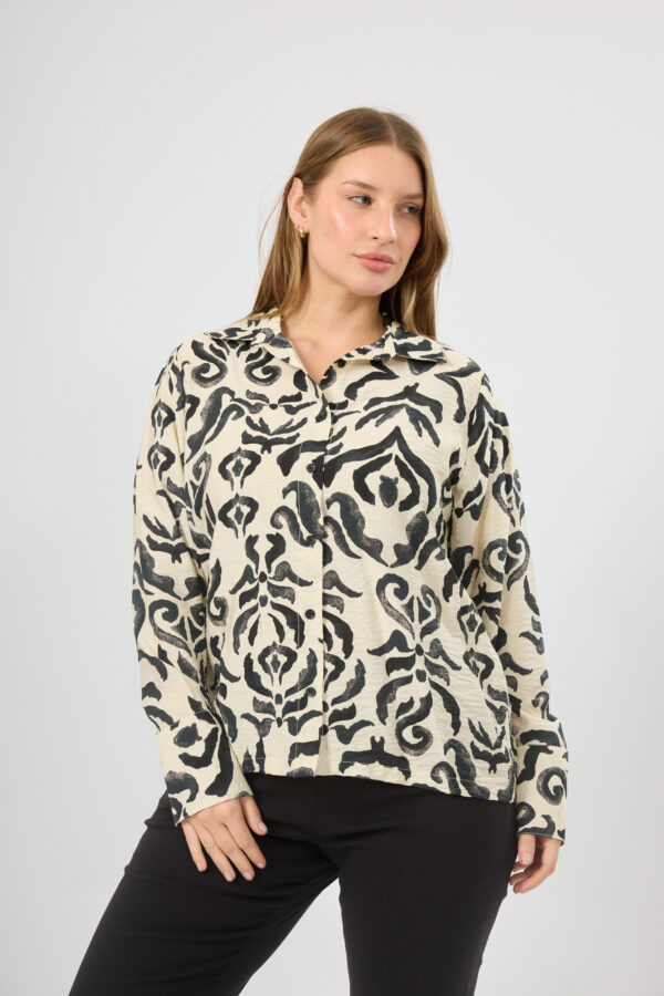 Camisa bordada c/ tajos y tira remangar (oversize)