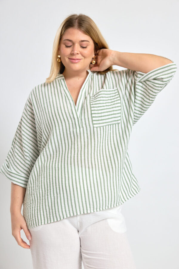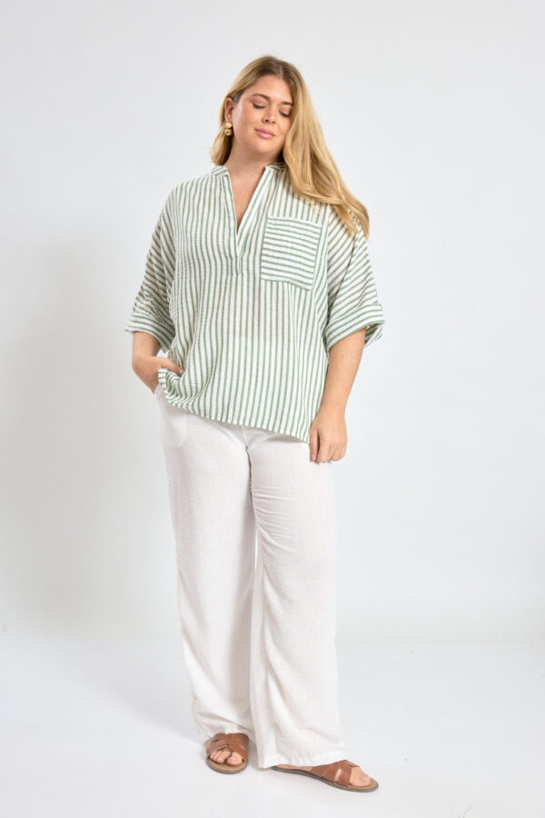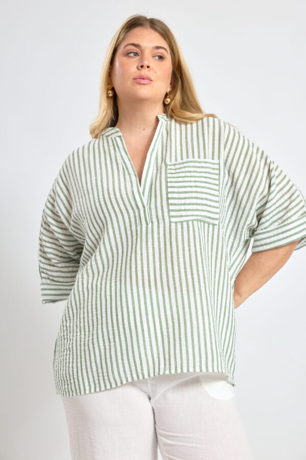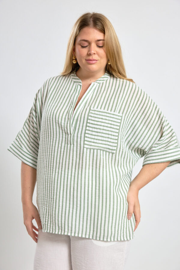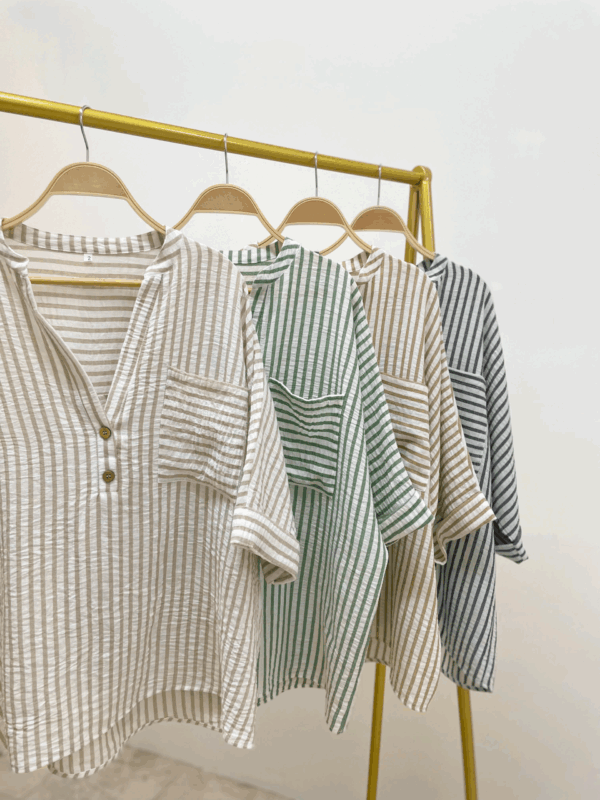 Camisa oversize manga murcielago de lino rayado