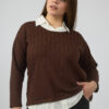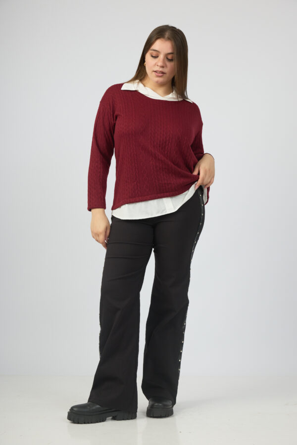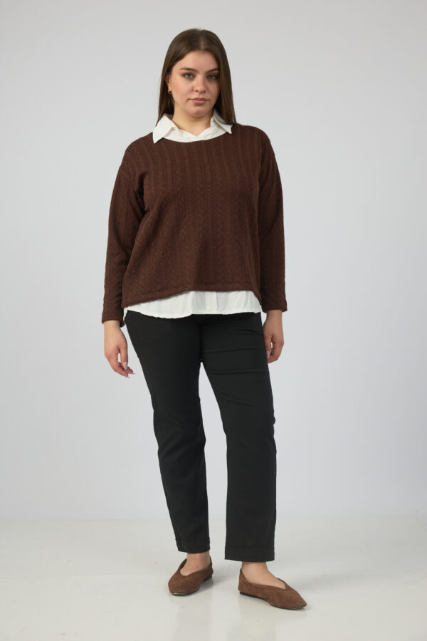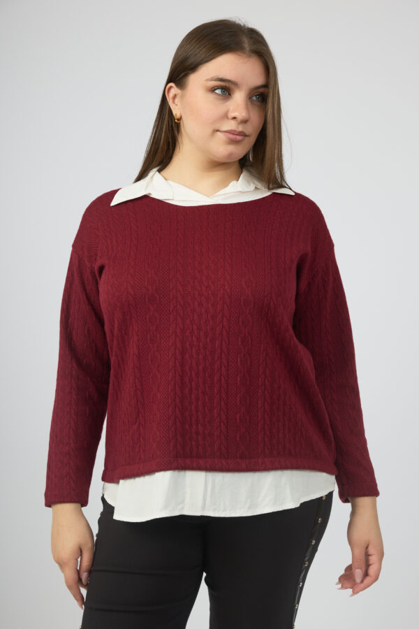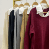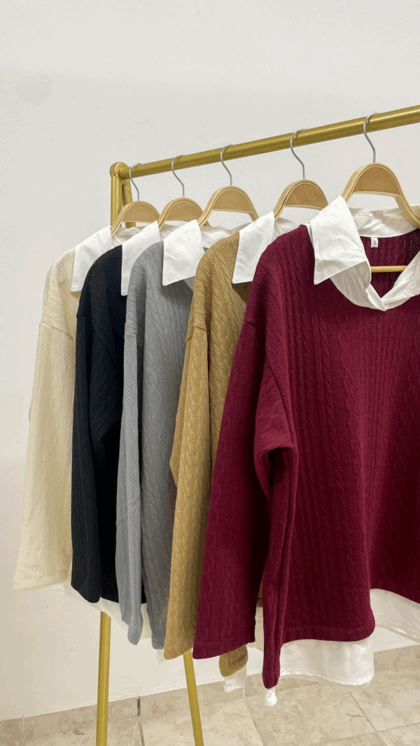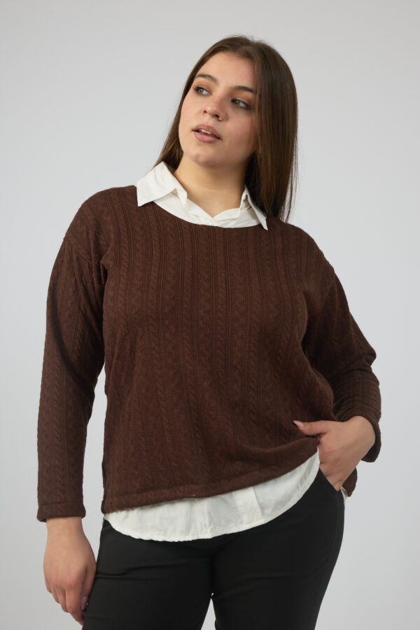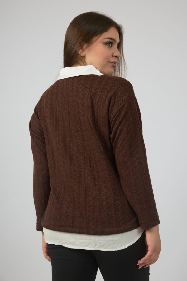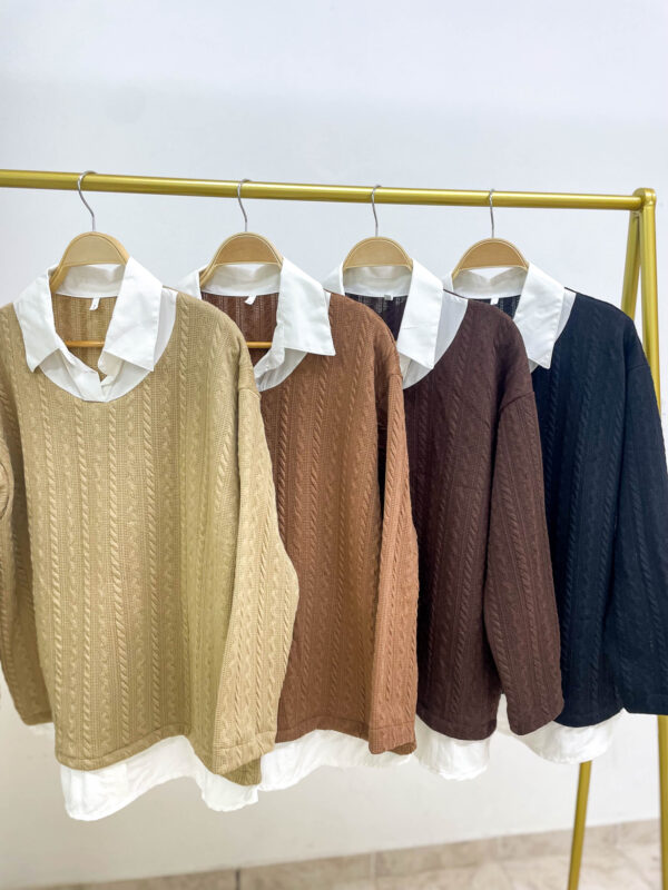 Sweater trenzada combi camisa cuello y ruedo